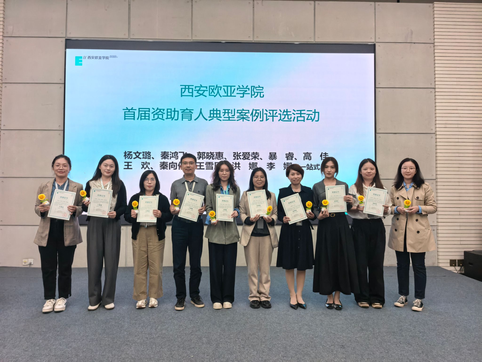 学生成长中心主管李艳为“资助育人典型案例”评选活动获奖团队代表颁发证书