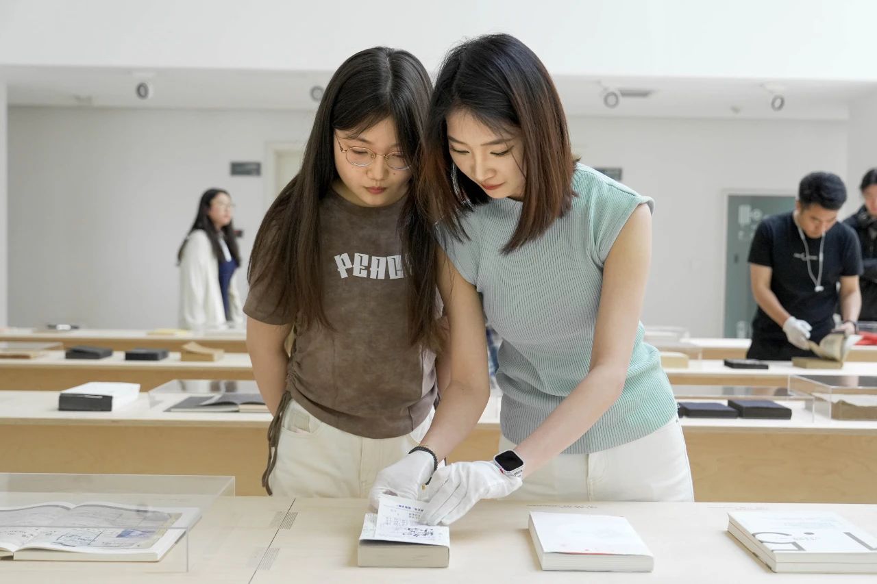 触摸纸张质感、拍照记录文字、相互探讨交流……展览引发观者频频思索。“此次展览最难得的地方在于汇集了许多绝版书籍与稀缺的设计作品,可以为师生提供系统性的观察样本。例如分类陈列同主题或同类型书籍,观众可以从中感受到不同的设计特点与多样的印刷技术,但是每种设计风格与内容意义都呈现出知行合一的形态,这是一件非常重要的事情。”参观展览的设计师李先生如是说。