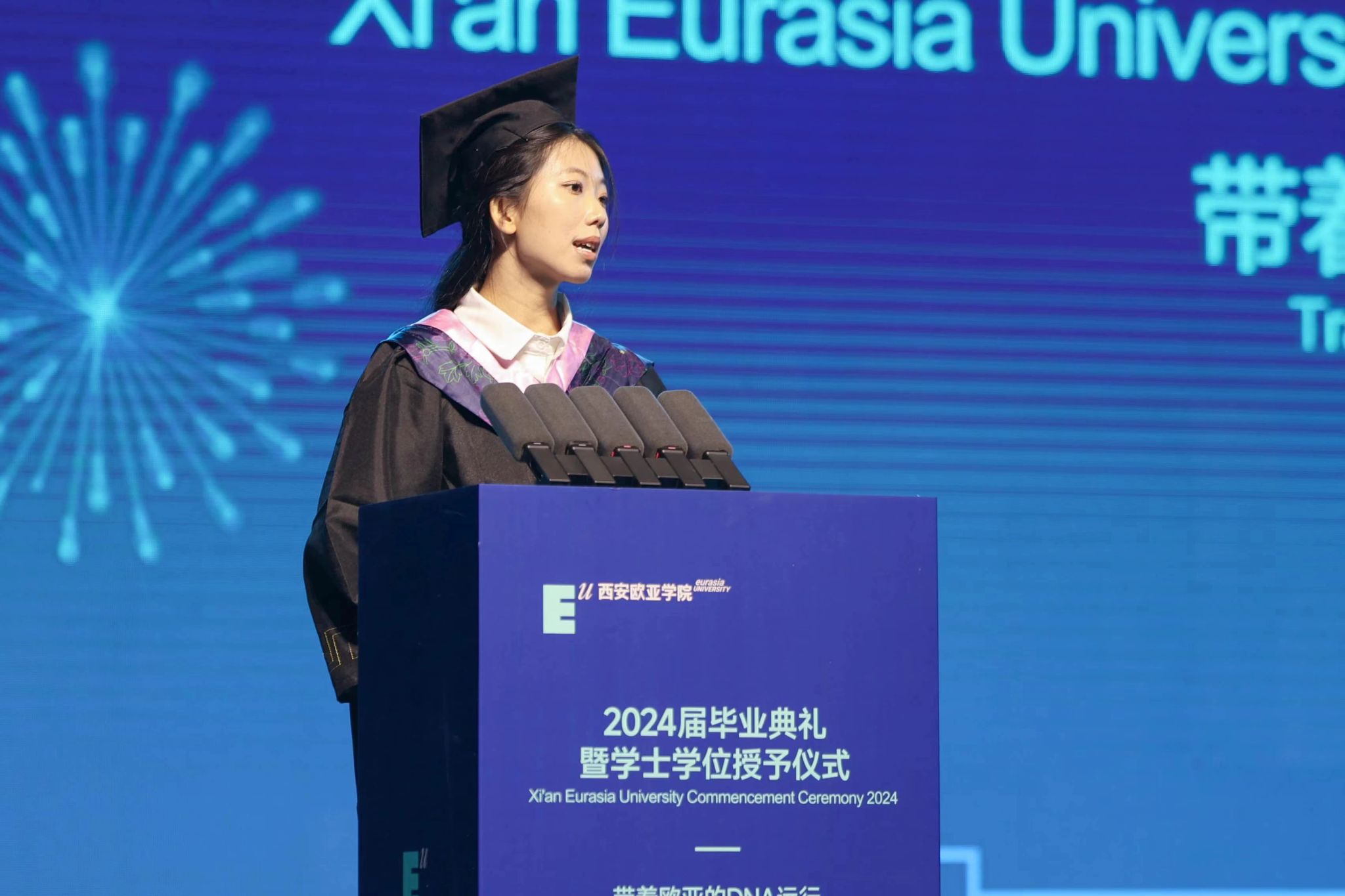 2024届优秀毕业生代表,人文教育学院、Ivy青年社区王梦乐同学在发言中说到:“欧亚,谢谢你!谢谢你‘和而不同’的校训教我兼容并蓄,谢谢你‘看到’每一个成长的个体,尊重我们按照本来的样子生长,谢谢你为我们营造了这样安全、优雅的校园空间和学习氛围,让我们能够专注学业,肆意成长。”