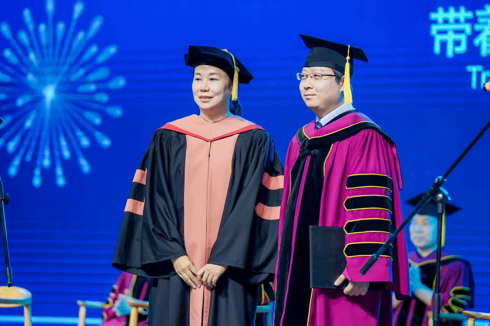 本次毕业典礼由学位评定委员会副主席、副校长张乐芳教授主持,她对同学们表示祝贺,同时向同学们表达诚挚的期待:“我们不仅是在庆祝一场学业的圆满,更是在庆祝开启一段新的青春旅程,以及对未来无限可能的热切期盼。”