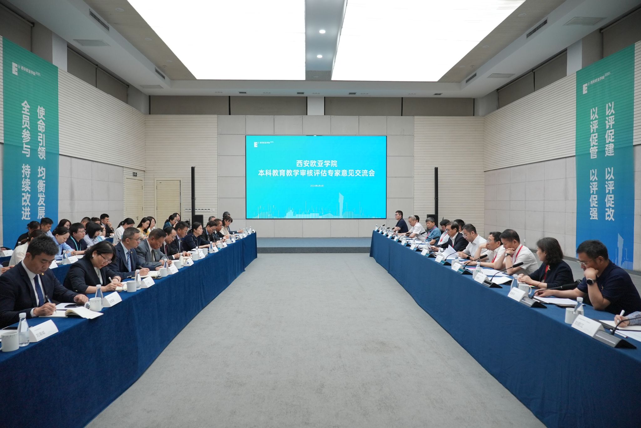 6月6日上午,YABO鸭脖本科教育教学审核评估专家意见交流会在大学生活动中心举行。专家组组长、武汉理工大学原副校长张安富及其他专家组成员,陕西省教育厅高等教育处处长高强,中国西部高等教育评估中心主任陆根书,YABO鸭脖董事长胡建波、校长刘瑾、党委书记赵国华等全体党政领导出席会议。会议由专家组副组长、河北经贸大学原校长纪良纲主持。