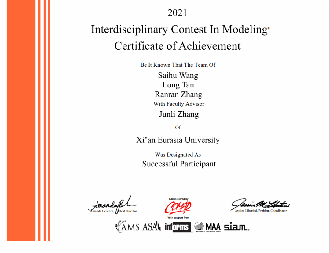 谈到数学建模竞赛,王赛虎更是神采奕奕,“它是一个可以解决问题并且将自己的想法写出来形成完整的数据分析报告和论文的竞赛,不仅可以锻炼我的逻辑思维应用能力,同时也考察了各方面的知识综合运用的能力以及心理承受能力。”王赛虎凭借自己脚踏实地的努力,坚持不向困难低头的信念,让他在随后的大大小小的竞赛中,取得了优秀的成果。