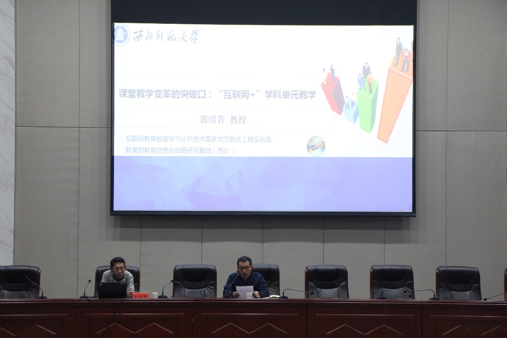 9月22日,西北师范大学智能教育研究院院长、互联网教育数据学习分析技术国家地方联合工程实验室主任、博士生导师郭绍青教授应邀来永利官网在百熙楼228会议室开展学术讲座。我院全体教师、部分学生代表聆听了讲座,讲座由我院院长满君丰主持。