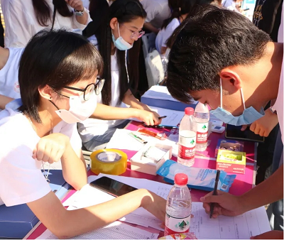 图为报到处的朋辈辅导员为新生答疑解惑