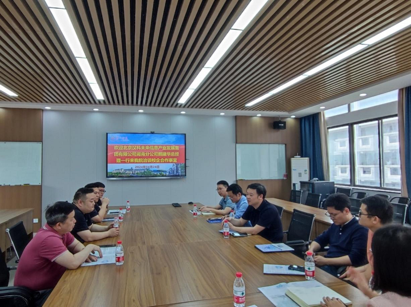 刘立勇代表学院对汉科未来信息产业发展集团湖南分公司一行的到来表示热烈欢迎,期待双方未来加强合作。杨恒伏指出,校企合作是推动学院发展、培养优秀人才的重要途径,希望双方能够进一步加强沟通与合作,共同促进信息产业的繁荣发展。