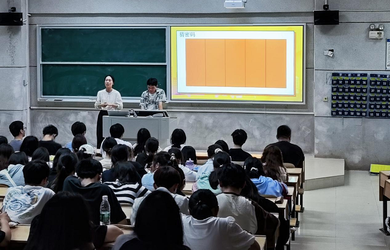 袁莎邀请永利官网大三密码班的学生现身说法,以“猜数字”游戏入题,帮助与会学生了解密码的概念,阐述了国家对密码行业的的政策支撑和行业薪资报酬,重点介绍了密码班学生的实习情况。
