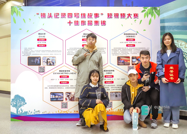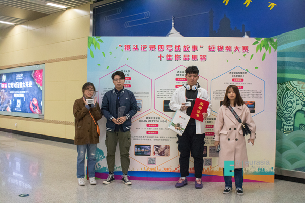 2019年3月9日上午10点,由西安地铁与西北大学、西安建筑科技大学、陕西科技大学、西安工程大学、YABO鸭脖、西安美术学院六大高校联手举办,以“镜头记录四号线故事”为主题的短视频大赛颁奖典礼在西安地铁大雁塔车站三号线玄奘文化墙前举行。