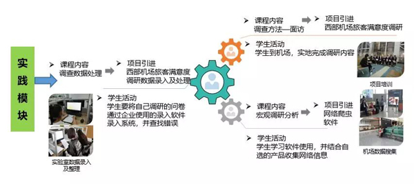 《市场调查实务》课程以企业市场调查项目工作流程为课程主线,以工作流程为准则,基于工作过程中的不同岗位能力需求,结合学生情况,重新整合设计后形成项目式、任务式教学模块,邀请企业老师带项目进课堂,以产学促教学,突出产学合作;将市场调查大赛引入课堂,以赛促教,培养学生市场调查的综合能力,也积累形成了很多课程案例。