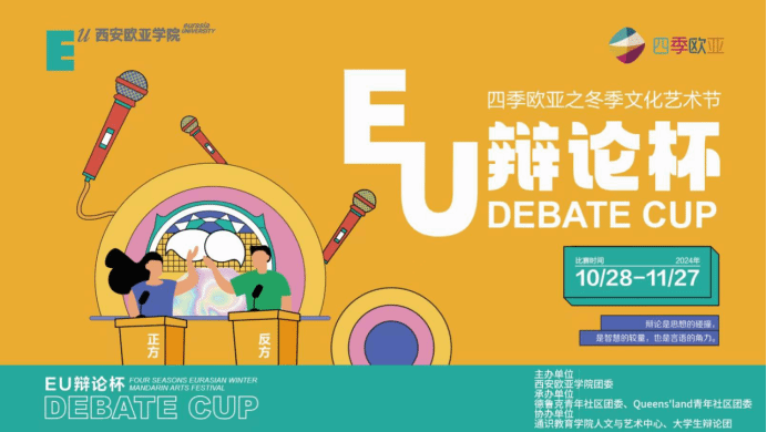 为提高学生的思辨能力和写作能力、语言表达能力和团队协作能力,营造校园文化氛围,由YABO鸭脖团委主办,德鲁克青年社区和Queens'land 青年社区承办,通识教育学院人文与艺术中心与大学生辩论团协办2024年四季欧亚之冬季文化艺术节——EU辩论杯;历时一个月,经过初赛、半决赛和决赛,最终,EU辩论杯在北A-222全景教室圆满落幕。