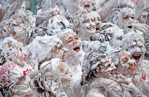 所谓的“泡沫战争”( foam war)就是学生之间互相往对方身上涂抹泡沫,可以增进人们之间的交流和感情。学校让新生们疯狂地玩耍,以便他们摆脱束缚(get rid of the restraints),发挥自己的创造力(display their creativity),释放自己的天性(release their nature),将学校当作自己的家。