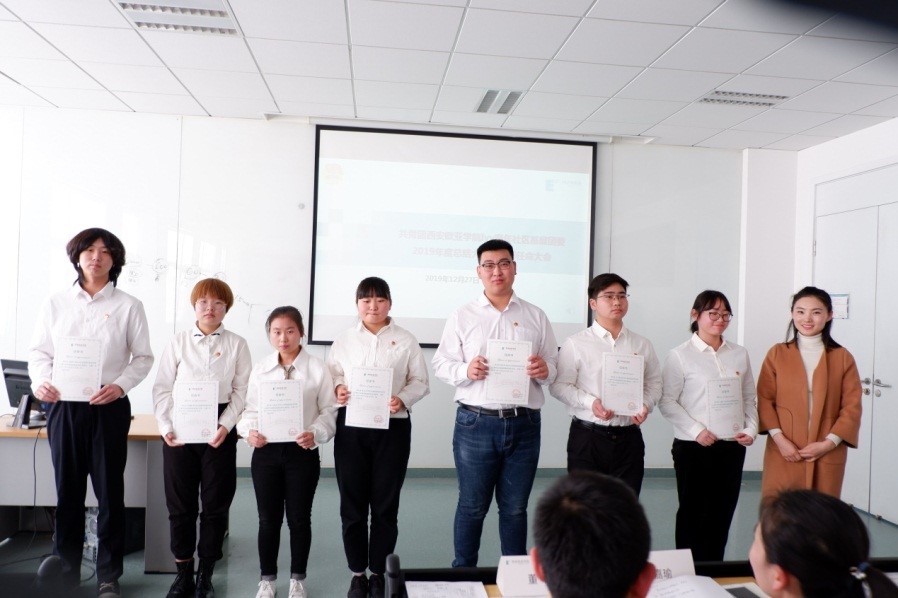 随后,Ivy青年社区主管助理田甜老师上台宣读了《关于2019-2020年度Ivy青年社区基层团委学生干部任命的决定》,并由姚新颖老师和李停老师分别为基层团委副书记曹涛同学和陈璟蕾、孟天奇、宋振西等7名同学颁发了任命书。