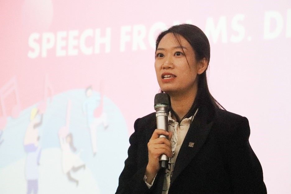 随后鸭脖国际合作与交流中心副主任丁洁老师在同学们的热烈掌声中上台为本次表彰致辞。她首先对国际青年社区一年来的各项工作给予肯定。同时丁洁老师以剑桥大学学生的生活作息及行为思想为例,激励我们要有求知若饥,虚心若愚的生活学习态度。