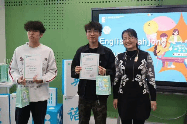 国际语言中心老师与社区辅导员为英语麻将活动获奖学生颁奖