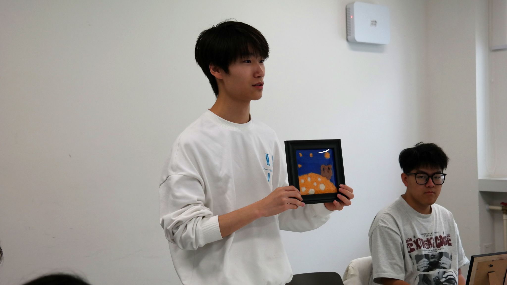 在这样轻松的氛围里,师生们渐渐放下拘谨。有的同学为了做出立体的小花朵,主动向身边擅长手工的老师请教;有的老师则和学生组队,一人负责勾勒轮廓,一人负责填充细节,原本需要独自完成的作品,在协作中变得更具创意。指尖的动作从生涩到流畅,羊毛在一次次戳压中逐渐成型,过程中偶尔出现的小挑战,反而成了大家交流的契机——“这里要轻一点,不然会戳破底布”“我们可以加些浅色羊毛做渐变效果”,细碎的讨论声里,满是彼此支持的温暖。