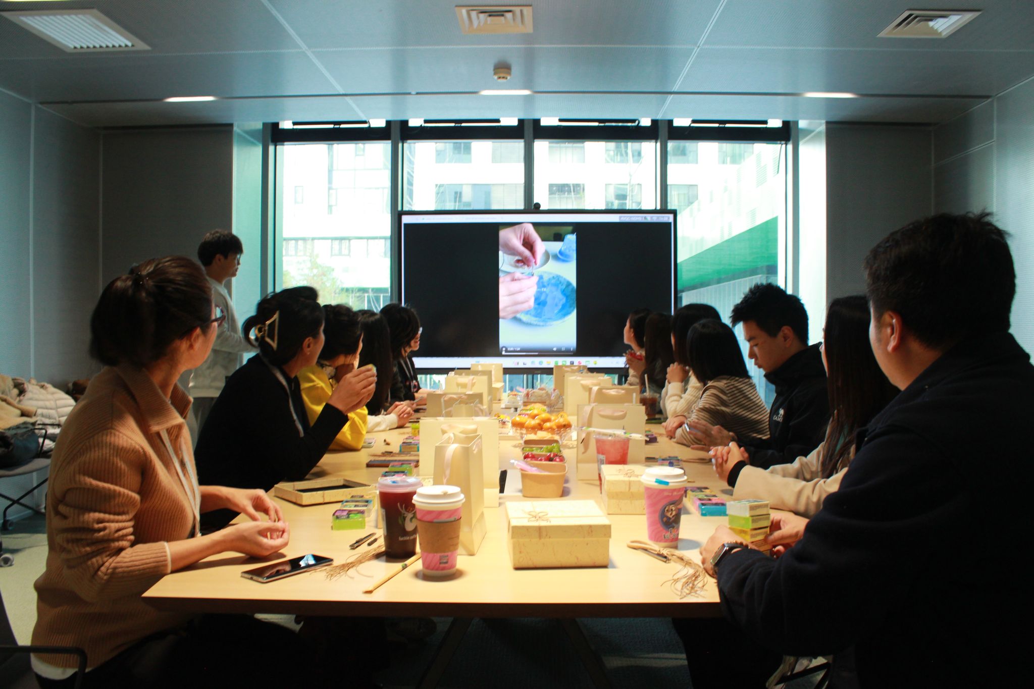 轻柔的背景音乐里,辅导员们围坐一堂,跟着教学视频解锁葡萄皂制作技能 —— 皂基融化的精准温度、天然色素的渐变调配、葡萄果粒的圆润塑形、藤蔓纹路的细腻勾勒,每一步都藏着讲究,为创作做好充足准备。