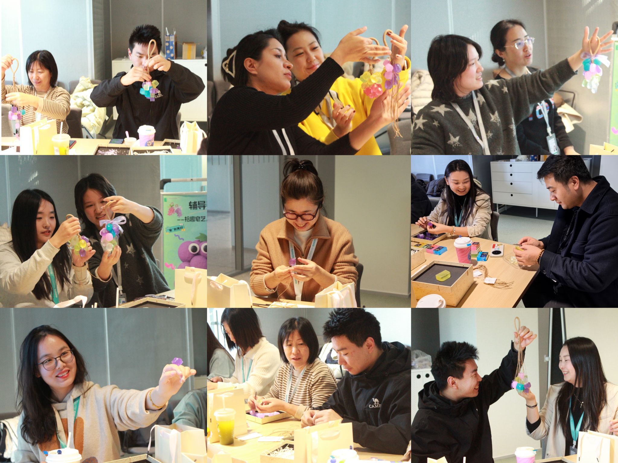 葡萄皂静置定型后,一场小型 “作品展” 悄然上线:晶莹的串状葡萄皂、憨态的单颗款、绿叶点缀的创意品,每一件都藏着独一无二的巧思,正如欧亚 30 年来,每一位教育者在平凡岗位上书写的不凡育人故事。大家手持自己的 “得意之作” 合影,镜头里的笑脸明亮又真挚,这笑容里有手工创作的成就感,更有同行相伴的归属感 —— 而这份温暖,正是 “做平凡世界的一束光” 最鲜活的注脚。