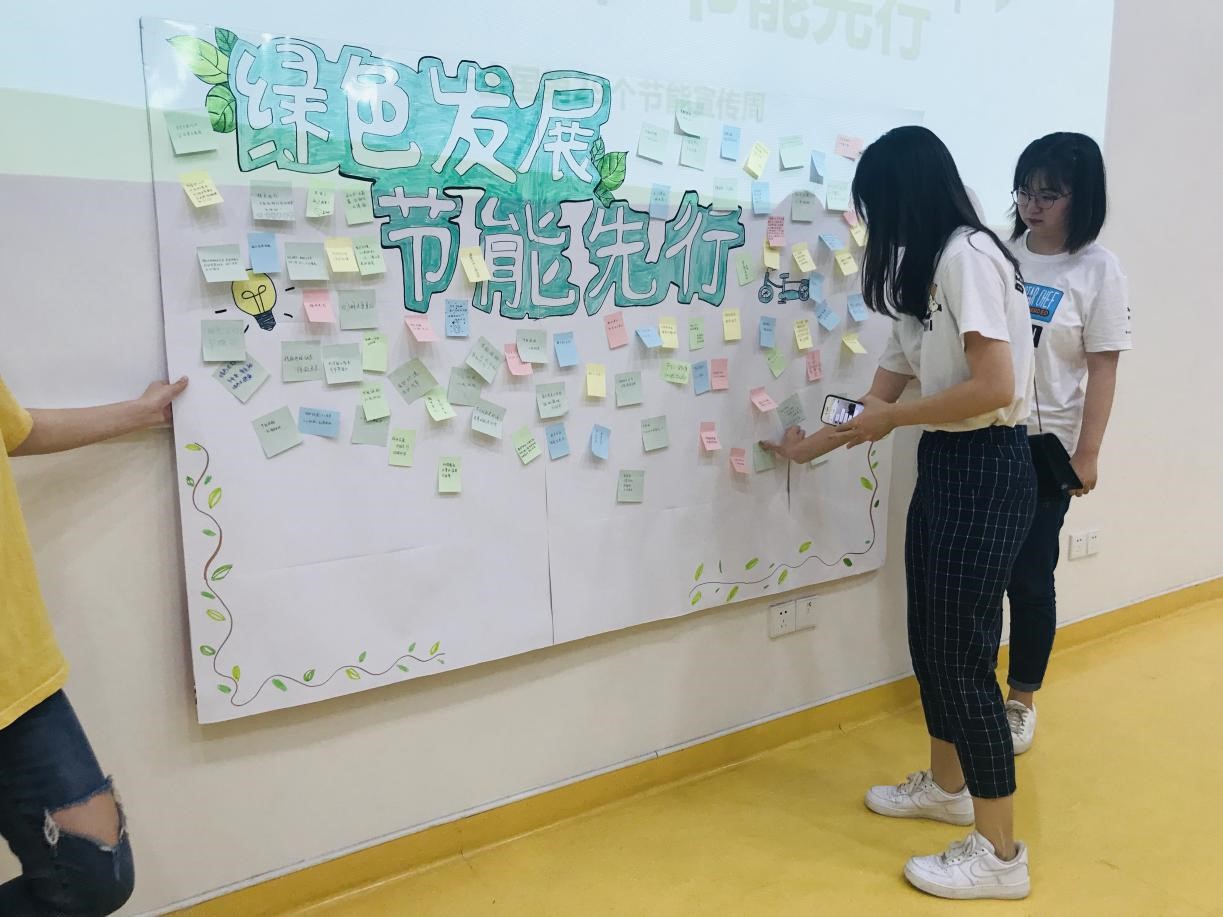 第二青年社区分党委积极倡导同学们做好以“绿色发展,节能先行”为主题的能源资源节约和生态环境保护宣传活动,活动围绕“营造绿色节能新风向”而展开,同学们积极响应节约活动号召,并在“绿色发展,节能先行”倡议书纸板上,用便利贴写下自己在之后的学习生活中为践行节能,反对浪费力所能及的做法:“平时少点外卖,逛超市自己拿袋,一点一滴,从我做起”“大自然给予我们美好的生活,我们回报她一片绿色,绿色行动,人人有责”“每天多走几步路,蚂蚁森林能种树”“节约,节能,节节相关;环境,环保,环环相扣”。同学们为节能发出倡议,为环保付出实践,争做节能、绿色生活的响应者、自觉者和先行者。