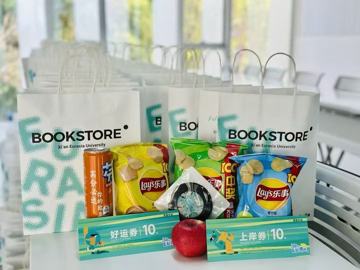 每份考研礼包里都附上了“好运券”与“上岸券”,这份精心准备的礼物,既是考研路上的能量补给站,更是温暖的慰藉与前行的动力。愿它成为欧亚考研学生逐梦途中的伙伴,陪伴大家带着独属于欧亚的印记,一战成硕。