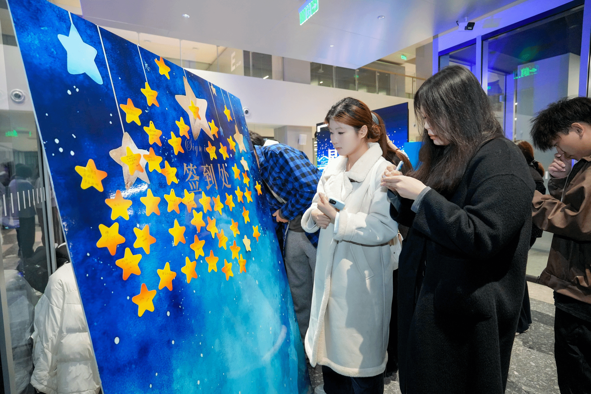 在活动现场同学们在签到板上一笔一划写下期许、一贴一粘完成互动,每一枚独一无二的 “星光” 签到标识,都定格了大家奔赴星光之约的温暖瞬间,为这场表彰典礼留存下专属温情。