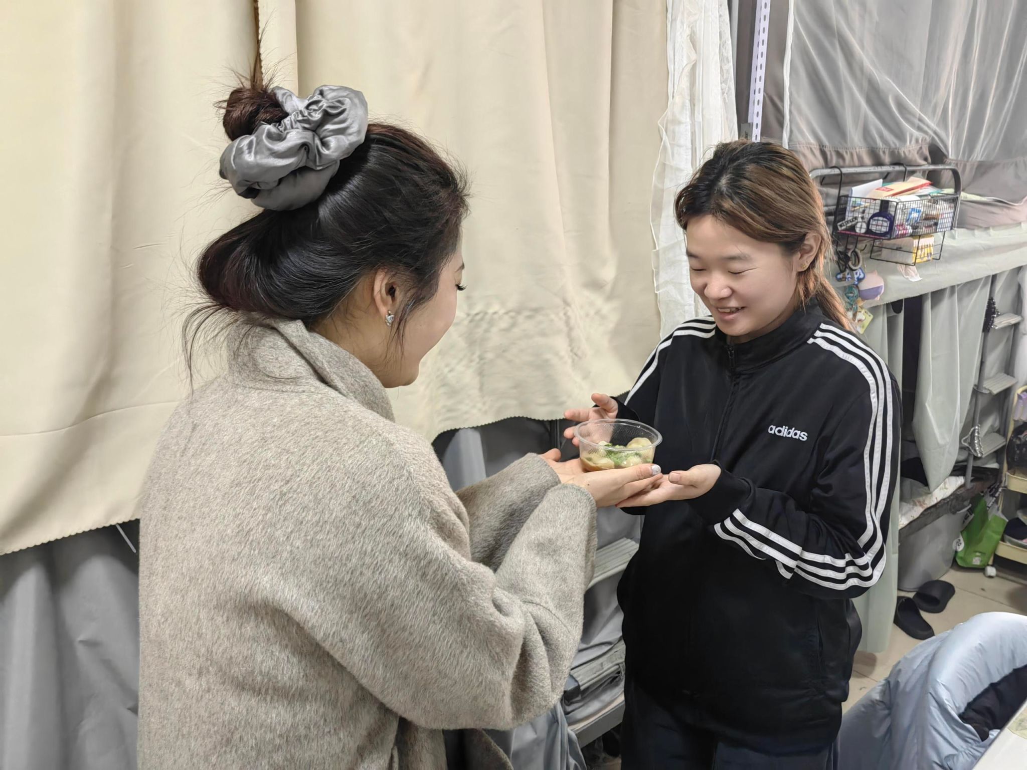 汤圆出锅后,老师们端着碗"闯"进了宿舍