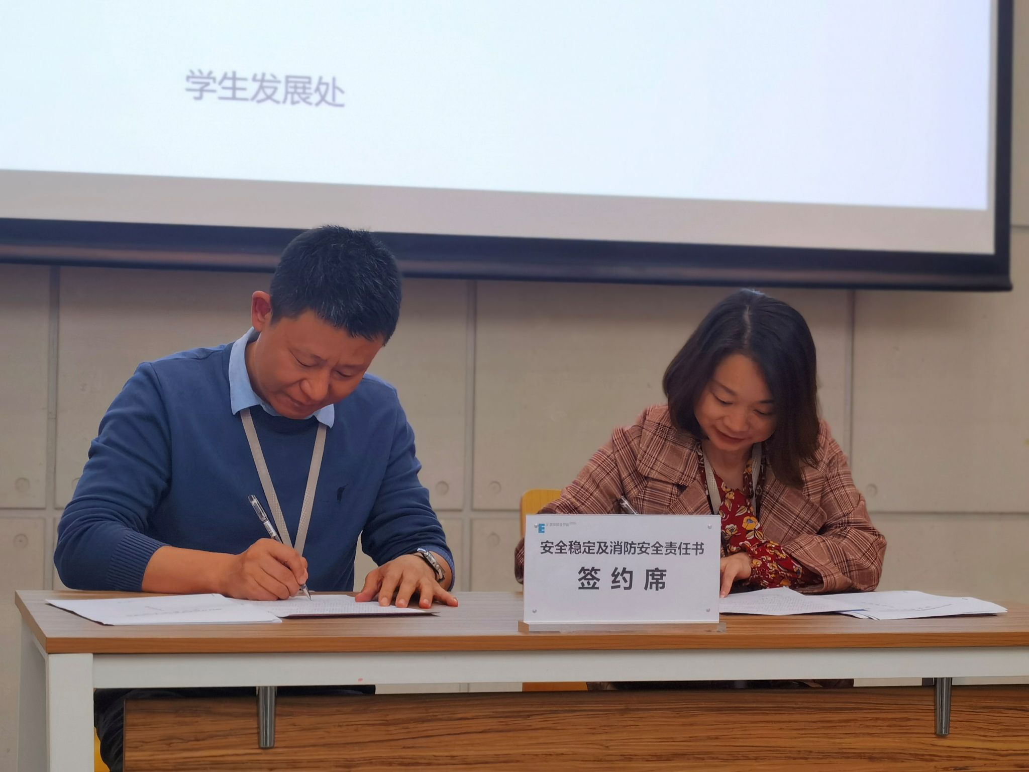 此次会议上,学生发展处董杨副处长与学生发展处各业务中心、青年社区、分院学生事务中心主管签订了2023年学生发展处安全稳定工作目标责任书。