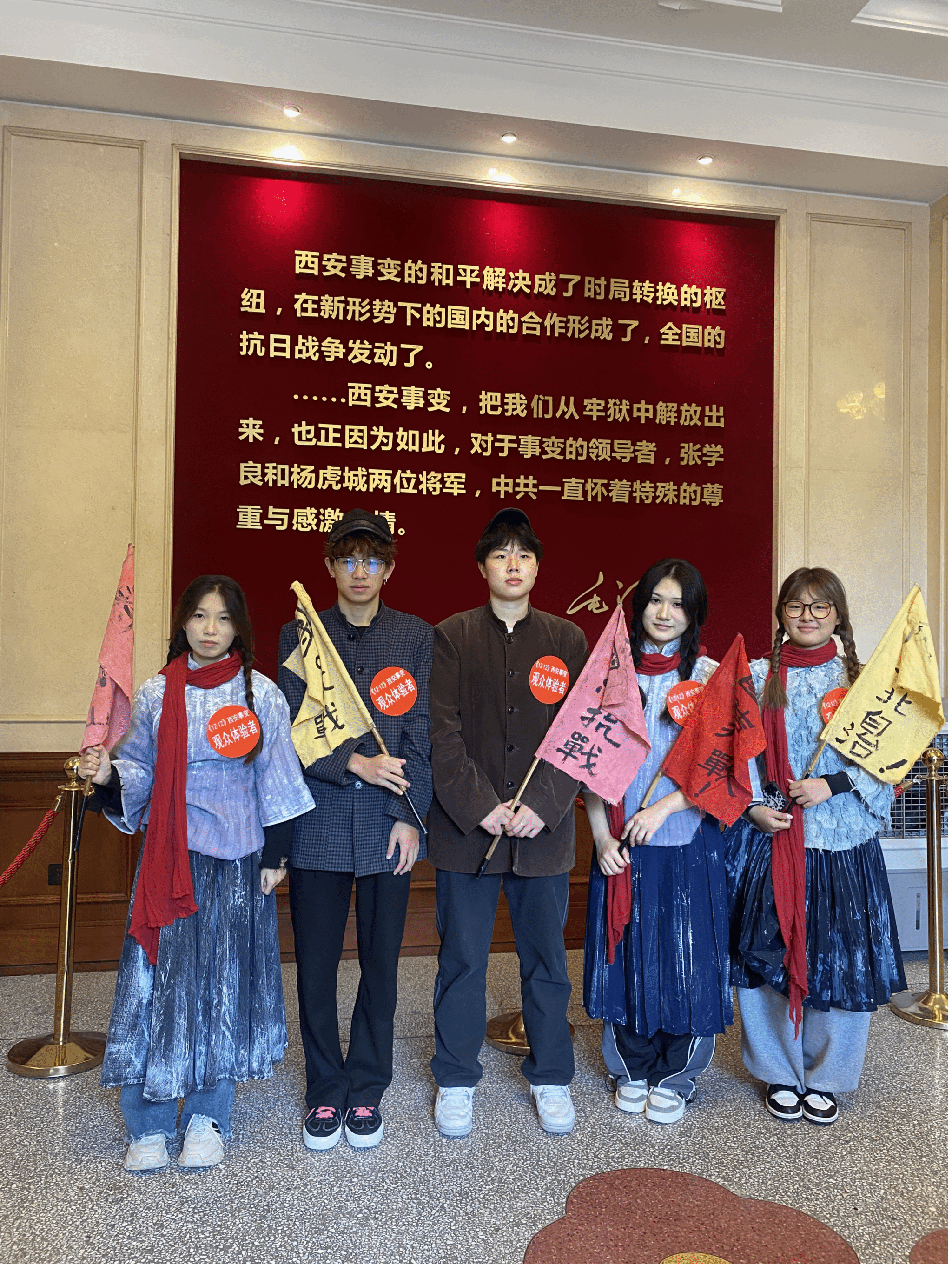 这场演出突破了传统观演界限,学生们时而化身街头市民,时而置身事变现场,在“子弹从身边飞过”的沉浸式感官冲击中,对西安事变的历史背景、人物抉择有了更鲜活的认知。剧场外,华清宫的历史遗迹更让这段记忆具象化——兵谏亭遗址、留有弹孔的砖墙、复原的民国居室……每一处细节都是历史的注脚,让学生在“实景课堂”中触摸到真实的历史肌理。