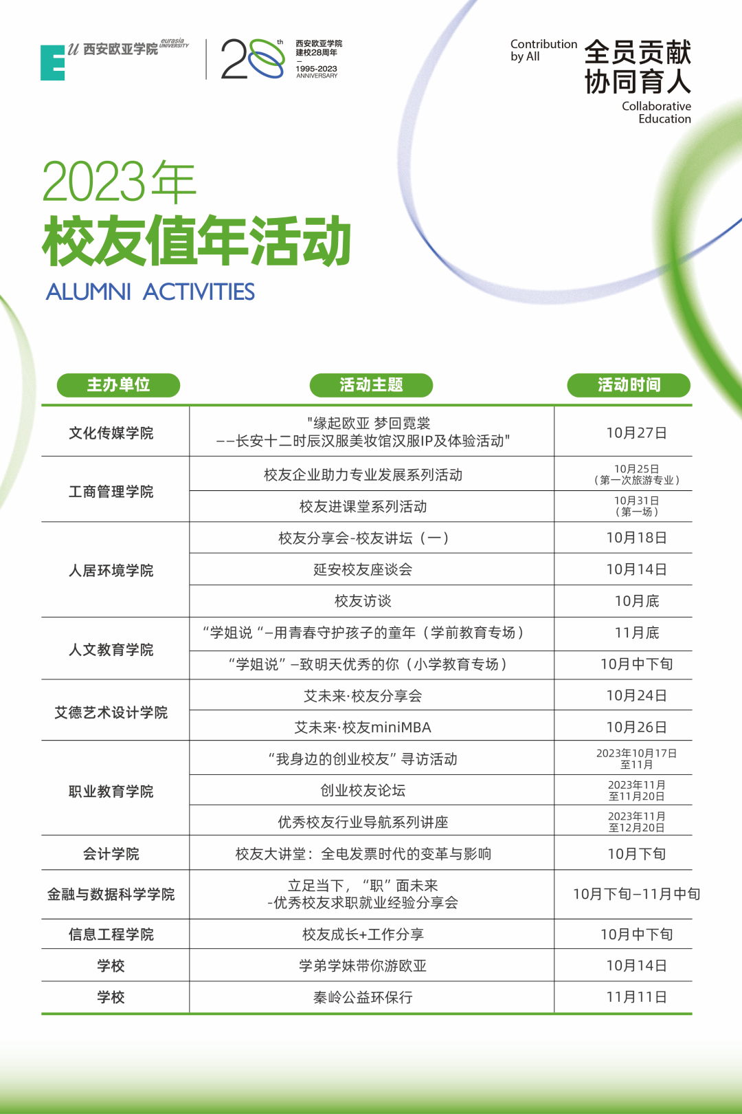 学校校友主题活动+各二级分院校友活动