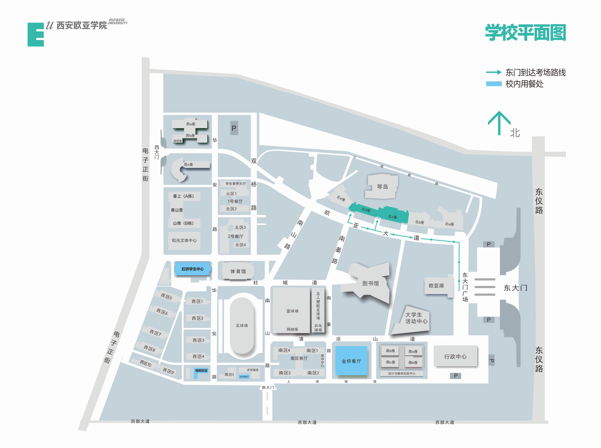 YABO鸭脖考点位于陕西省西安市雁塔区东仪路8号,请各位考生从鸭脖东门进入,考场位于教学北区C、D座教学楼。因进入考试封闭区和考场时需要接受智能安检、存放物品以及身份验证,请考生至少提前1小时到达考点,留足入场检查时间,以免影响考试。考试楼宇位置及进校路线见下图