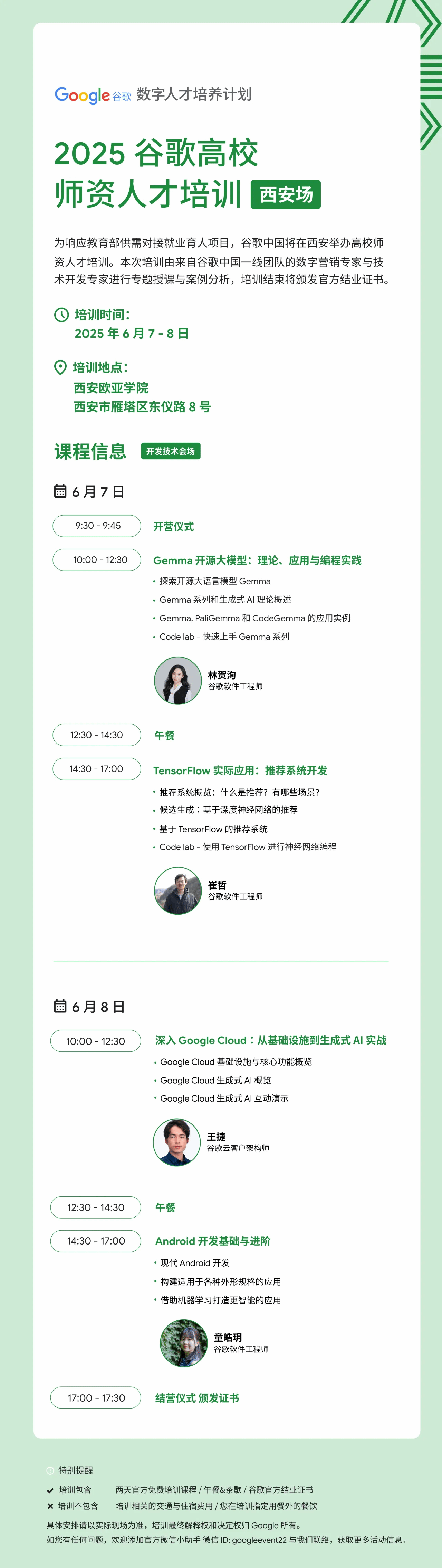 一线专家授课: 由谷歌中国一线团队的数字营销专家与技术开发专家联袂主讲。实战案例驱动: 结合丰富实操案例,从理论到实践深度解析。官方权威认证: 培训结束将颁发谷歌官方结业证书,助力您的专业发展。本次培训旨在赋能高校教师,期待将最前沿的数字营销理念、工具与实践融入教育教学,培养更具职业竞争力的国际化数字人才。