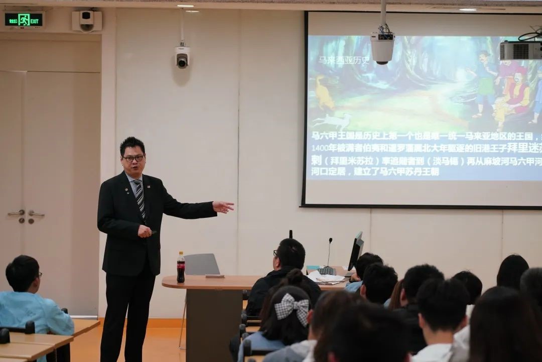 幽默风趣的Andrew教授从地理位置、语言、历史、旅游、饮食等多方面介绍了马来西亚文化,与现场同学互动分享。