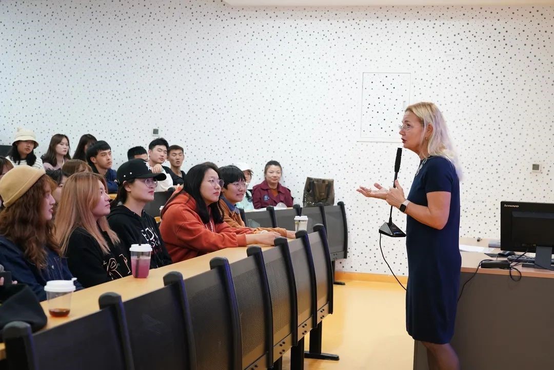 Vita教授从个人背景开始,分享初来中国的文化碰撞,经历饮食、交通、交朋友方面的困扰,鼓励学生打破疏离感,与更多的外国师生进行交流分享。