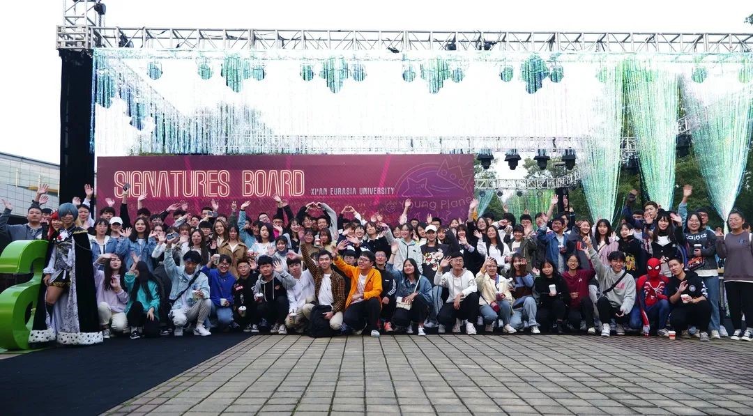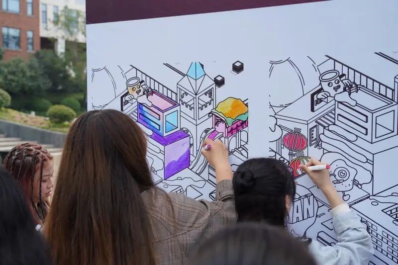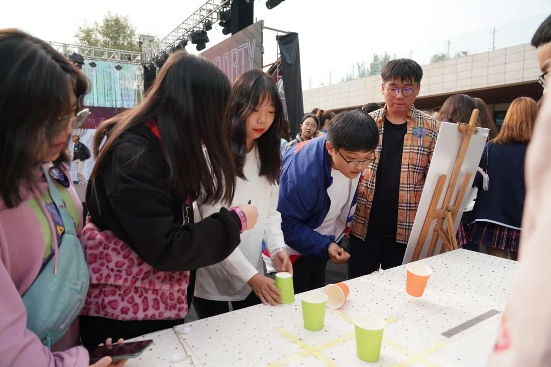 在工作人员精心的布置下,现场设置了涂鸦墙、美食区以及游戏场。同学们渐渐在大学生活动中心南广场集合。
