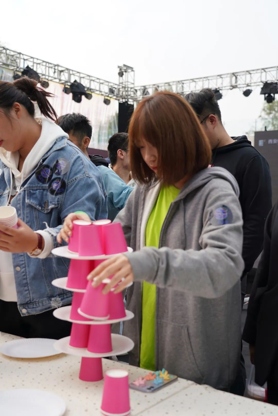 除了叠杯子外,还有法式烘焙、咖啡拉花、气泡分层、乐高组织等活动,现场的气氛也随着有趣的活动环节逐渐活跃起来。
