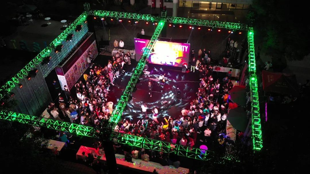 2020年10月7日,大学生活动中心南广场,国际合作与交流中心举办了“霓虹派对”国际文化交流派对。