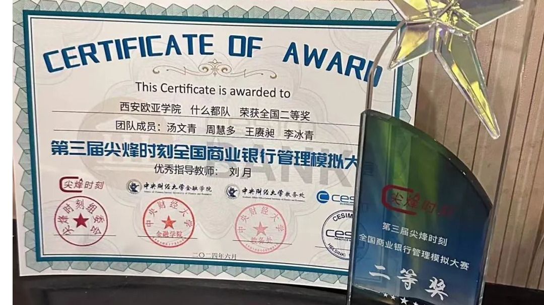 【金融与数据科学学院】金融与数据科学学院团队在第三届"尖烽时刻"全国商业银行管理模拟大赛中喜摘全国二等奖桂冠