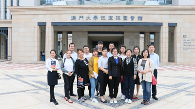 (图一)鸭脖澳大学习交流访问团 (图二)CKLC导师团进行专题分享交流 (图三)CKLC院长Dr.Yu为鸭脖访问团作主旨报告 (图四)访问团在CKLC讨论室进行分享讨论 (图五)鸭脖学生代表在CKLC的Teach- i...