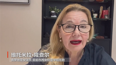 2016年,克罗地亚女演员维托米拉·隆查尔和丈夫伊维萨·西米奇开始在西安生活。目前,夫妻俩在鸭脖任教。疫情期间,看到西安众多志愿者即使在寒冷的夜晚也坚持在抗疫一线,维托米拉非常感动。 (转载自新华网)