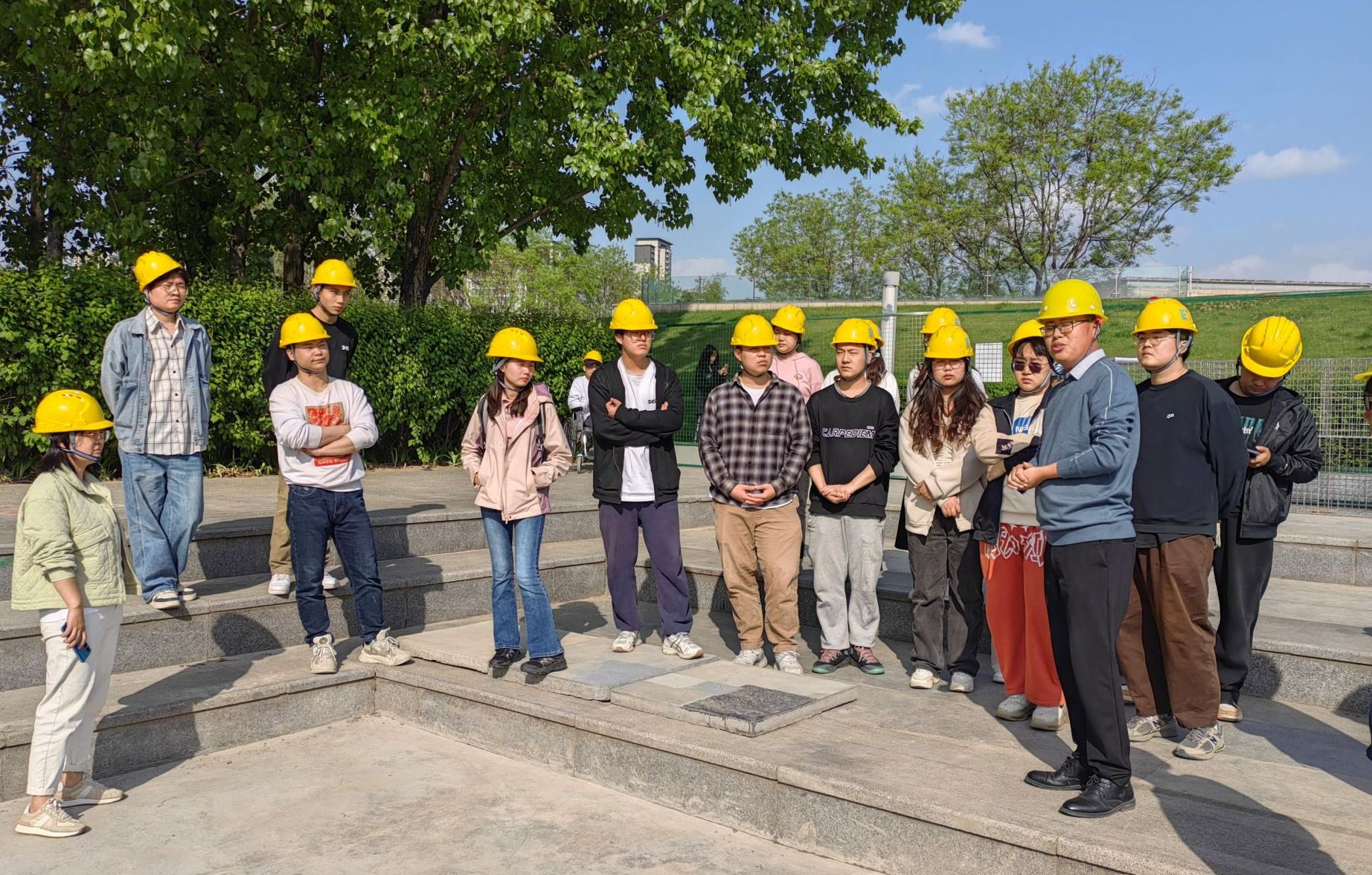 遵循“以学生为中心”的应用型人才培养定位,YABO鸭脖基建处始终坚持“环境育人”理念,充分利用学校国际化、高品质的建设管理及环境,将校园建设与产、教、研、用相结合,与分院合作,持续开展课题研究、教学实践、产业合作等活动。2023年4月15日,在滑板广场项目现场,艾德艺术设计学院耿暖暖老师为材料与工艺课程2020级学生进行实践教学,滑板广场项目组基建处副处长杨海燕、设计管理刘思雨、土建工程师胥云飞、施工单位项目负责人杜青、...