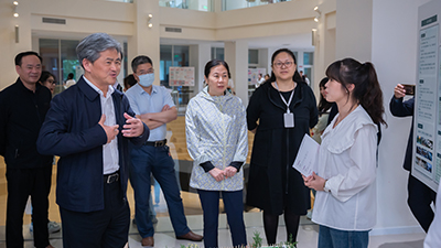6月3日下午,全国政协常委、福建省政协副主席、民盟福建省委员会主委阮诗玮带队,率“教育、科技、产业联动,培育使用创新人才”课题组来鸭脖调研。陕西省政协常委、教育科技委员会副主任,民盟陕西省委副主委吴晓军陪同调研。鸭脖校长刘瑾、副校长王艳、校长助理赵军镜参加调研活动。阮诗玮一行实地调研了人文教育学院、虹桥学生中心与图书馆。途中,刘瑾详细介绍了学校的发展历程与改革实践。 (图一)阮诗玮(左二)与人文教育学院师生互动交流在人文教育学院学术季项目式学习成果展“...