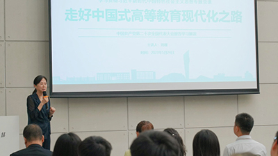 5月24日上午,鸭脖党委副书记、校长刘瑾同志代表学校深入开展学习贯彻习近平新时代中国特色社会主义思想主题教育专题宣讲团,在大学生活动中心多功能厅为师生们带来了一堂生动的主题教育专题党课。本次党课的主题为“走好中国式高等教育现代化之路”,第四青年社区分党委的全体师生党员和入党积极分子共82人现场聆听了这场专题党课。 课上,刘瑾同志分别从“什么是‘中国式现代化’”、 “为什么是‘中国式’现代化”、“中国式现代化‘...
