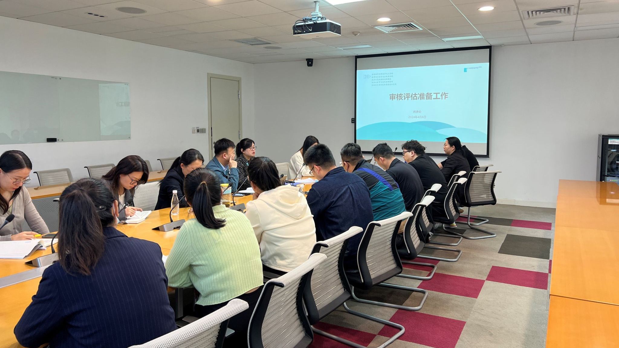 2024年4月9日,教务处在学校行政中心一楼东会议室召开审核评估工作专题会议,会议由教务处处长张娜主持,部门全体员工参加了本次会议。 教务处处长张娜首先对本次审核评估指标体系以及陕西省对本次评估的要求进行了深入解读,对鸭脖现有数据进行了分析。随后,张娜老师对审核评估工作的具体安排进行了详细介绍,包括线上、线下评估的时间安排、评估标准、评估流程以及部门每一位员工工作的要点等方面,都进行了深入细致的讲解。与会人员认真听取了讲解,...