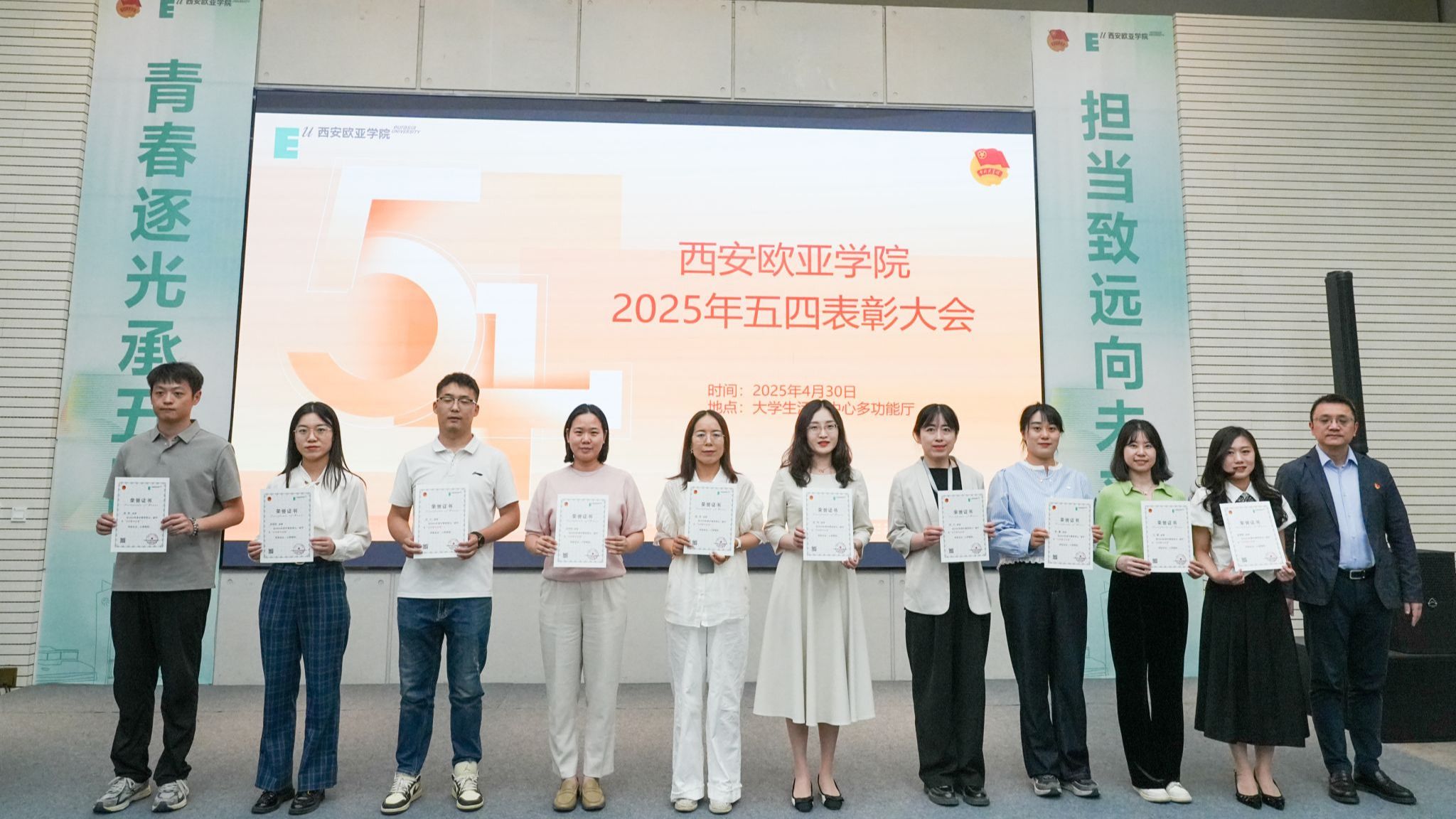 三十载砥砺前行,五四火炬照亮青春征程。为充分发挥模范引领作用,激励广大青年奋发有为,30日下午,五四表彰大会在YABO鸭脖大学生活动中心多功能厅顺利召开。出席此次大会的有校党委副书记、副校长张军宏,校党委办公室主任赖志彬,校团委书记、学生发展处处长董杨,学生发展处处长助理李嘉瑜,各青年社区分党委书记、分院学生事务中心主管、校团委干部、各青年社区团委书记、各分院学生成长促进会指导老师以及获奖师生代表。此次大会由校团委副书记李艳主持。...