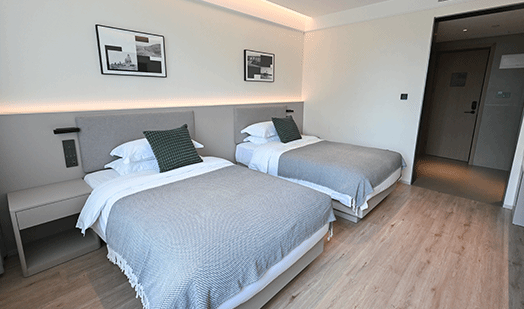 亦悠酒店位于YABO鸭脖内,距南门仅150米,北邻学院标准化田径场。酒店拥有标准双床/大床房、轻享双床/大床房、豪华大床房等127间客房,可同时容纳254人入住。房间设施完备,配备冷暖空调、24小时冷热水、无线投屏、IPTV、免费minibar软饮及无线WIFI。酒店另设24小时健身房、洗衣房及大堂书吧(校友之家),设计简约时尚,舒适宜人,是学习度假、探亲访友、旅游及会议住宿的理想之选,亦为校内学术研讨、论坛、培训及赛事活动提供优质住宿配套。