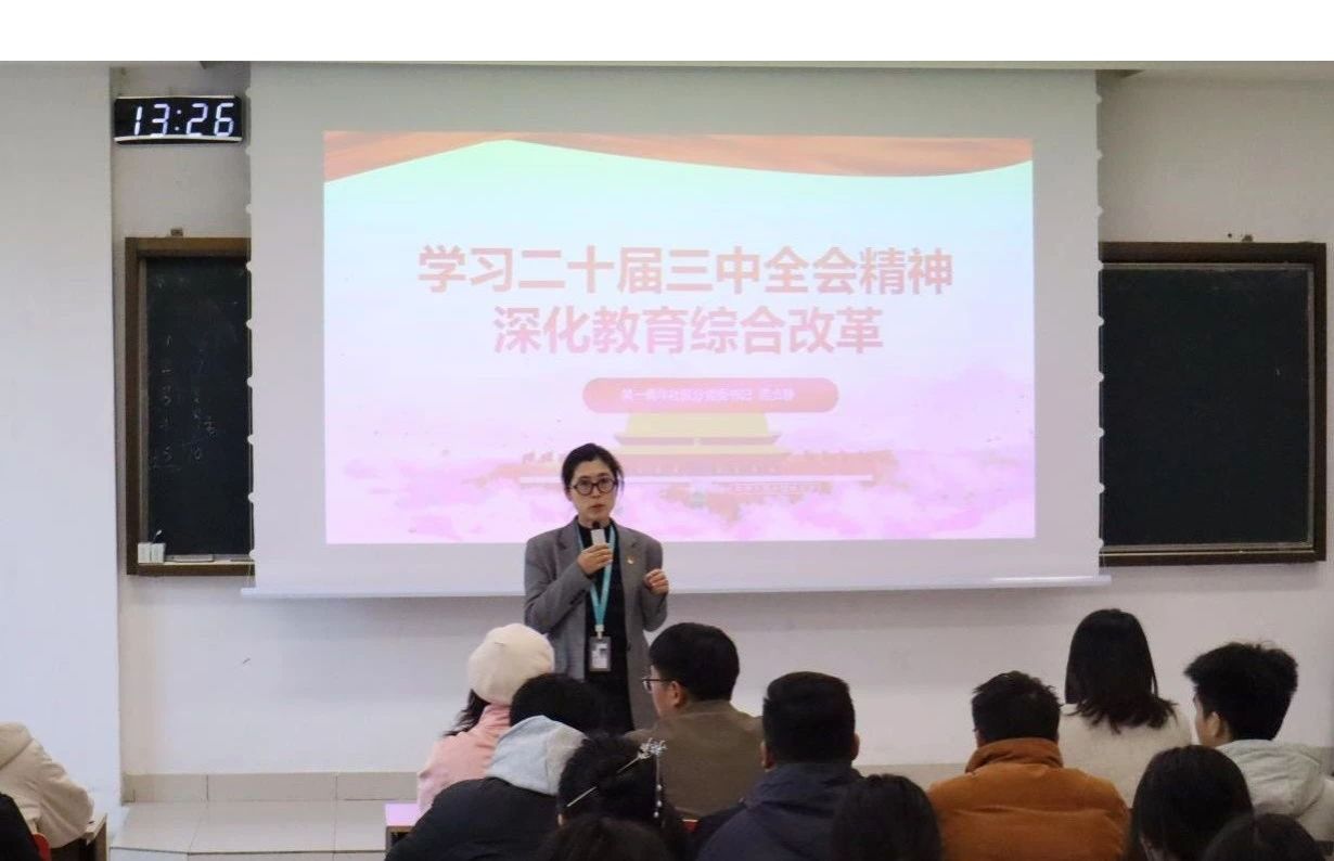 为扎实推进学习型党组织建设,切实加强党员教育工作,提升党员思想政治素养,近日,第一青年社区分党委书记范贞静以“坚定信念,砥砺前行,共筑新时代先锋堡垒”为题,围绕党的二十届三中全会精神,为全体党员上了一堂主题鲜明、内涵深刻、意义深远的专题党课。在党课中,范贞静同志首先介绍了这次党课的学习主题。然后从党的二十届三中全会的重大意义、主要内容、全力以赴抓好全会精神的贯彻落实等方面进行了宣讲和阐释,并列举诸多契合时代背景的实际案例,...