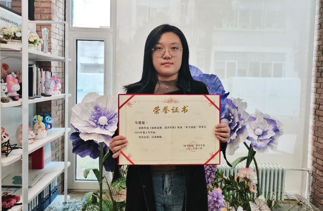近日,第二青年社区分党委学生马楚媗创作的视频作品《金秋送爽,国庆欢歌》荣获“学习强国”同学汇2024年度人气作品。该作品以独特的艺术视角和真挚的爱国情怀,生动展现了新时代青年学子对祖国的深情礼赞,充分彰显了第二青年社区分党委“党建引领、实践育人”的工作成效。第二青年社区分党委将以此次殊荣为契机,持续深化“党建+美育”融合品牌建设,培育更多有思想深度、有情感温度、有时代高度的青年文化作品,为培养德艺双馨的新时代青年贡献力量。...