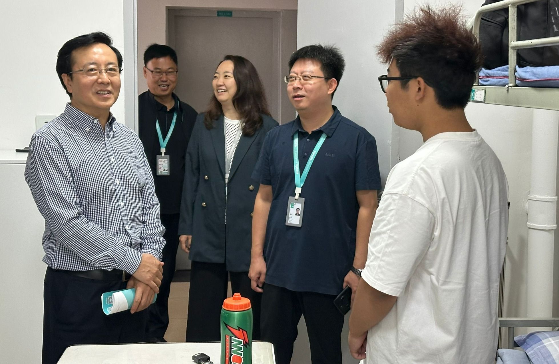 2025年8月29日,鸭脖党委书记赵国华同志及党委组织部部长赖志彬同志一行带队深入Ivy青年社区,实地走访2025级新生宿舍,与学生面对面交流,倾听学生及家长心声,并送去殷切勉励和暖心问候,学生社区主管白利宁同志陪同调研。