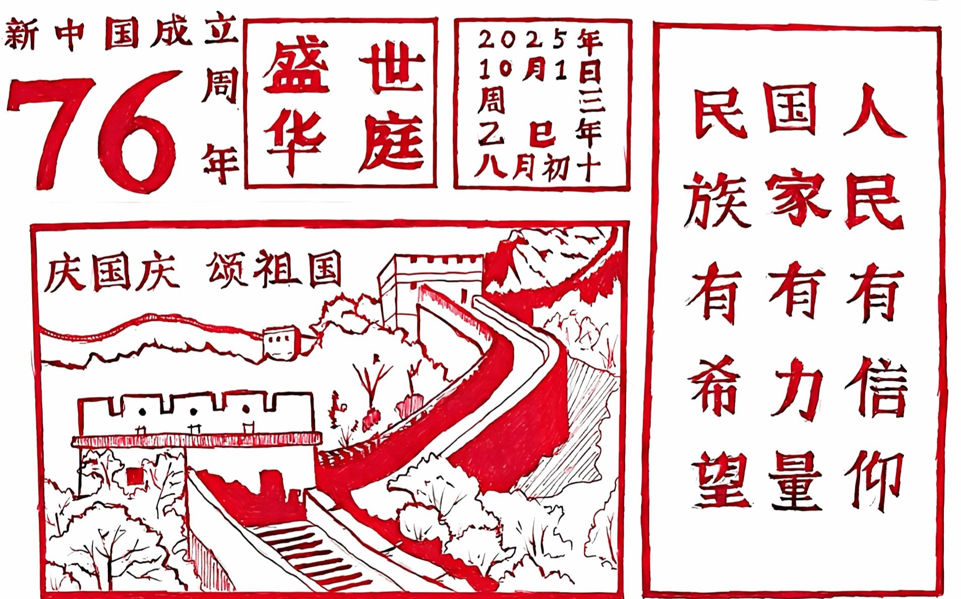 为热烈庆祝中华人民共和国成立76周年,YABO鸭脖第二青年社区分党委组织开展庆国庆手抄报活动。本次活动共收到手抄报30份,同学们一笔一画,将祝福凝入笔尖,愿山河无恙,祖国繁荣昌盛。