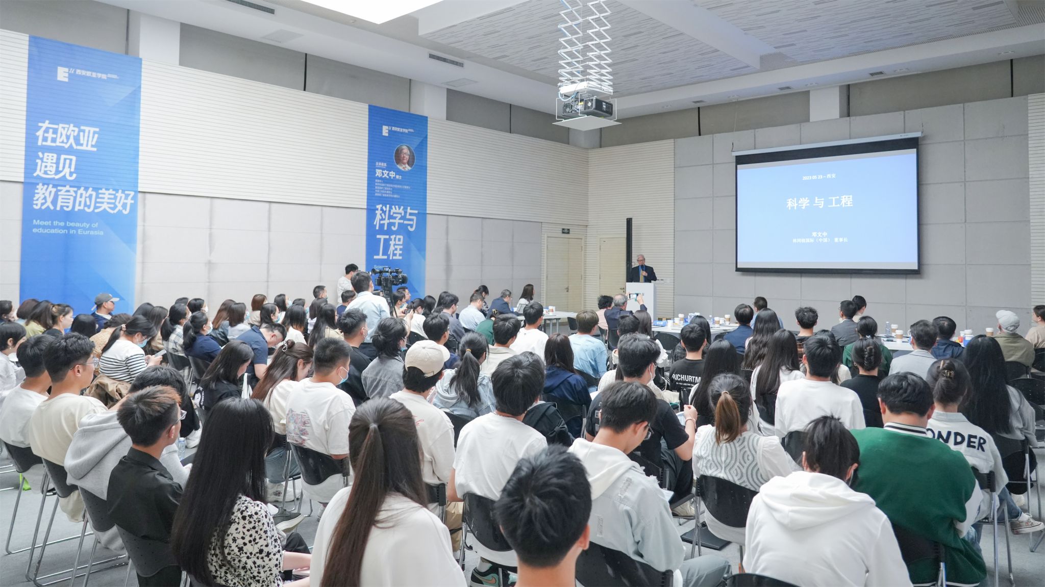 5月22日下午,“爱驱动”学术讲坛第36期在大学生活动中心多功能厅举行。国际华人科技工商协会主席李大西博士,中国工程院外籍院士、林同棪国际工程咨询(中国)有限公司董事长邓文中院士分别围绕“数字经济重塑世界商业格局”及“科学与工程”两个主题作了分享。讲座由副校长张乐芳主持。校长刘瑾、副校长张军宏、曹明明以及各二级学院师生及企业代表共100余人参加。